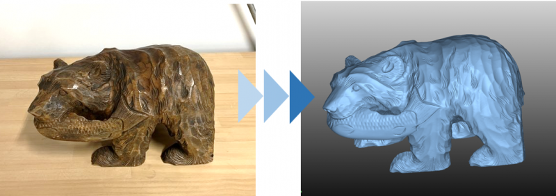 先ほどの木彫りの熊さんをカラー3Dスキャンしたデータがこちらです。